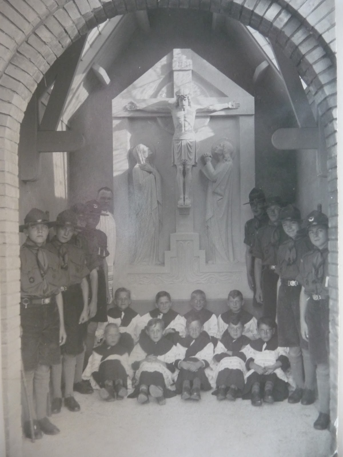 Dit zijn de namen van alle personen op de foto. Staand links van voor naar achter: Be Blixst, Frits Deiman, Johan Wortelboer, Albert Schulte en Pastoor Hanenkamp. Staand rechts zien we van voor naar achter dus eerst Herman Breurken en dan Siep D"olle, Be Andela en Otto ter Reegen. Op de voorste rij zitten van links naar rechts Johan Flint, Willy Deiman, Theo Fling en Willy Bruining en op de achterste rij Jopie Knispel, Willy Flint, Henk ter Reegen, Georg Breurken en Jan R"oben.